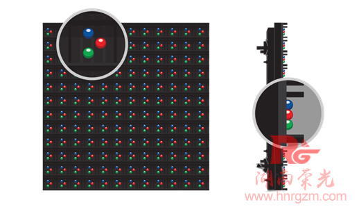 直插式LED通過引線連接電路板,位置更高。每個LED燈珠是紅、綠、藍(lán)單色燈珠。直插式LED